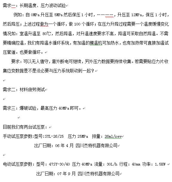 1、靜壓試驗;(最大試驗壓力40MPa);