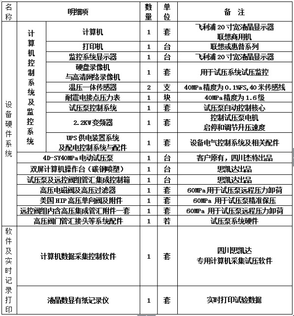 三、計算機控制試壓系統詳細配置: