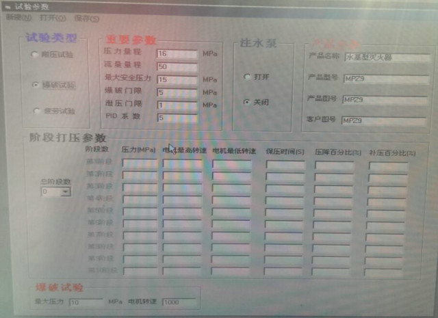 本系統內置本公司自主研發的專用控制軟件,操作界面人性化,軟件性能成熟穩定無缺陷,可以任意設定試驗項目、壓力值、保壓時間等各種試驗參數。完善的人機交互界面,制定試壓方案后會通過彈出窗口的形式引導操作員完成實驗。通過對話框上“確定”,“取消”按鈕對相對危險(例如爆破實驗)的試驗項目,讓程序員進行確認,確定實驗的準確與安全。軟件可根據用戶技術要求更改功能,可按照用戶自定義界面及功能編制,以雙方最終溝通需方認可的界面為準。