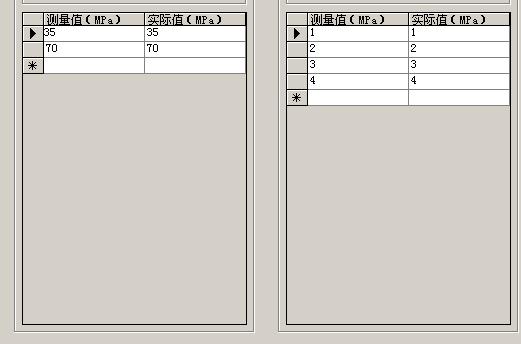 本軟件,可以對壓力表和傳感器互相進行校驗。將壓力表實測的壓力值填入格中實際值和測量值一一對應,為保證精度需要多采集幾個壓力點來設置,如下圖: