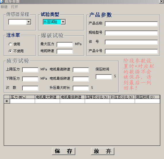 包括新建試驗參數和打開已經配置的試驗參數