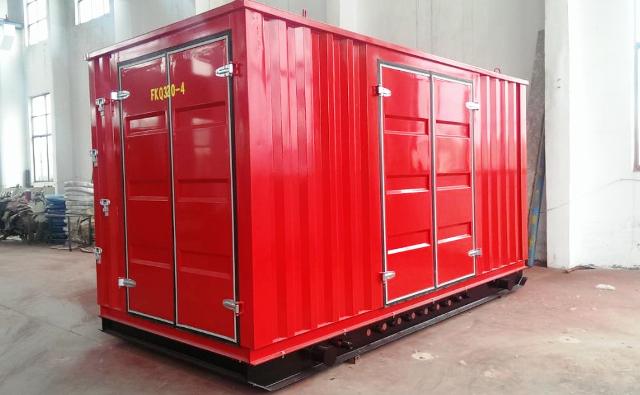 野營房規格尺寸:長X寬X高:4600X1950X2000mm,具有保溫功能,配備防爆照明、5Kw暖風機,左側雙開門、后端單開門、房子和底撬可以脫離。