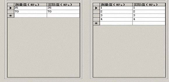 本軟件,可以對(duì)壓力表和傳感器互相進(jìn)行校驗(yàn)。將壓力表實(shí)測(cè)的壓力值填入格中實(shí)際值和測(cè)量值一一對(duì)應(yīng),為保證精度需要多采集幾個(gè)壓力點(diǎn)來設(shè)置,如下圖: