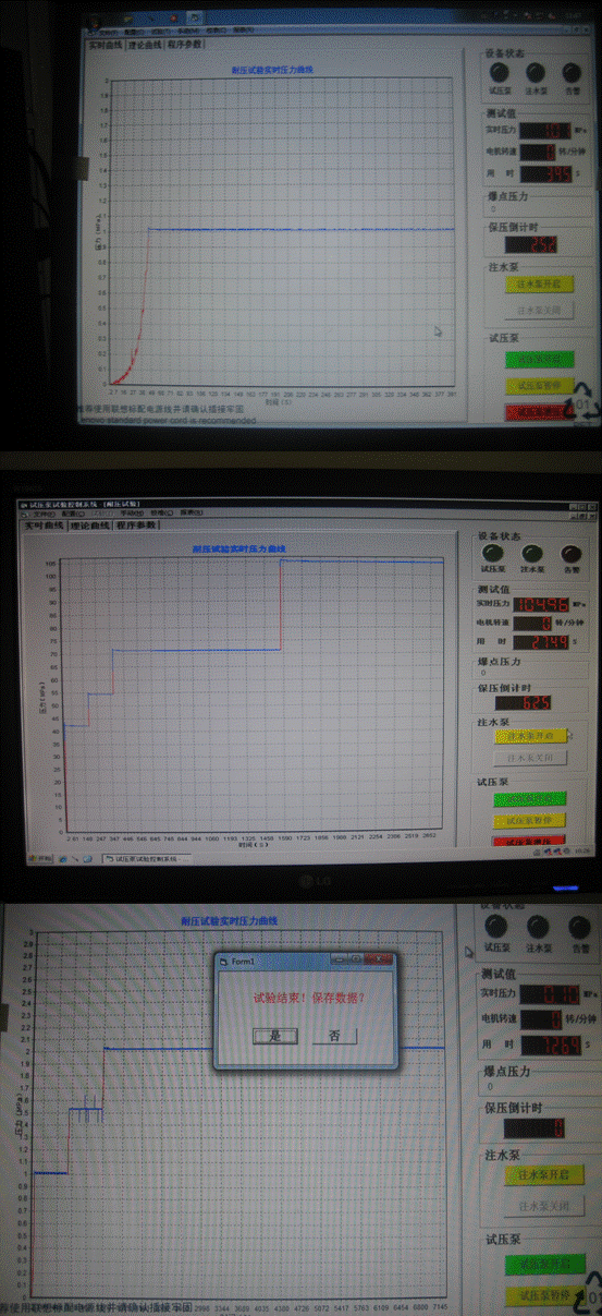 本設(shè)備主體由計(jì)算機(jī)控制系統(tǒng)、液晶數(shù)控系統(tǒng)、電動(dòng)試壓泵三部分組成。其中液晶數(shù)控系統(tǒng)與電動(dòng)試壓泵脫離計(jì)算機(jī)控制系統(tǒng)后都可獨(dú)立進(jìn)行試壓試驗(yàn),但只能顯示和控制壓力(顯示精度與控制精度和計(jì)算機(jī)系統(tǒng)一樣)不能進(jìn)行數(shù)據(jù)運(yùn)算與打印報(bào)表。