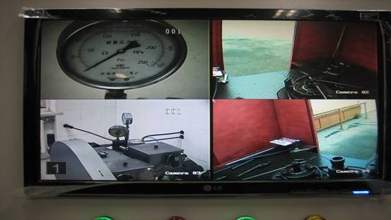 管線試壓區內同時安裝配置4路高清網絡攝像機(視頻監控系統放置在控制室內),可實現試壓區內無縫隙覆蓋式的監控,可隨時監控到被測容器以及整套試壓泵系統在壓力試驗中的實時狀況。