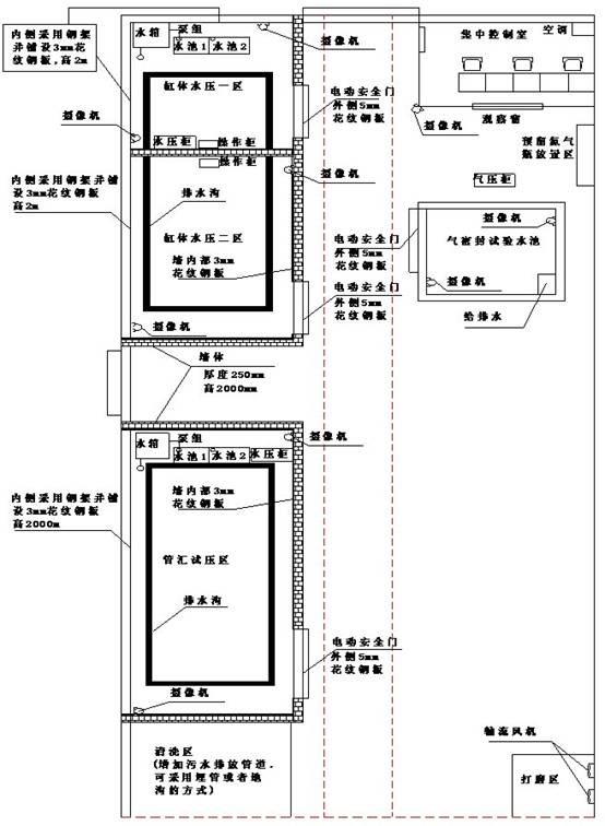 造方案其中的技術要求,結合我公司多年來的典型類似客戶解決方案,設計試壓間改造方案如下: