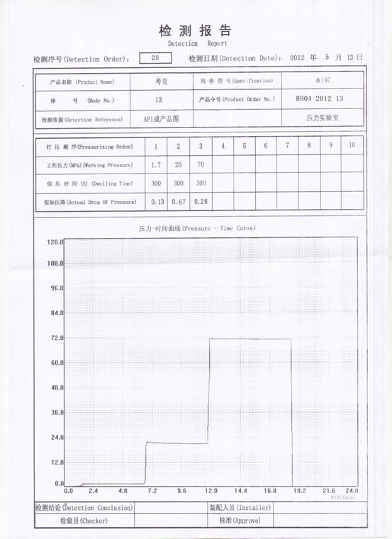 以上為客戶提供的試壓報表。僅供參考,具體請以實物為準。