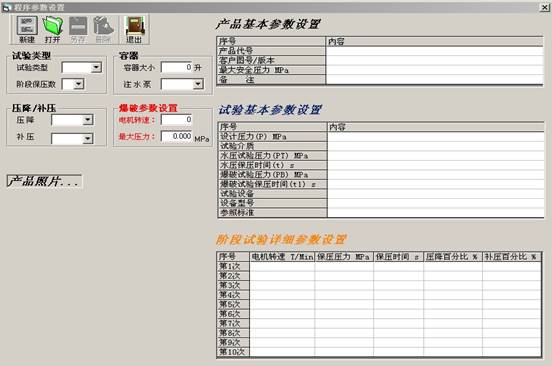 試驗程序及參數預輸入功能按照被測容器設定典型的試驗程序有: