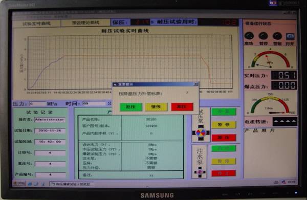 系統控制軟件保壓測試界面,圖片僅供參考具體請以實物為準。