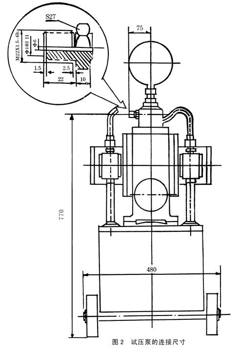 在泵的集水器中心線上,離地高度770毫米處,裝有工作接頭,有關尺寸如圖2,請用戶按此尺寸安排聯接管路。