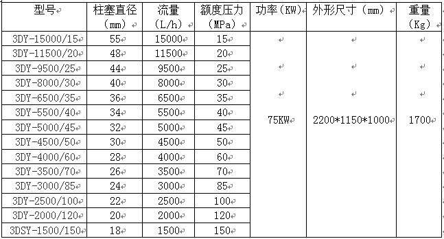 該泵為三缸臥式電動(dòng)試壓泵,采用先進(jìn)的“一”字形缸結(jié)構(gòu),具有流量大、效率高、運(yùn)行平穩(wěn)、性能穩(wěn)定、操作性能好、維修方便等特點(diǎn);具備試壓泵基本的自動(dòng)保壓和手動(dòng)升壓、卸荷等功能。