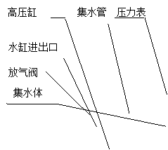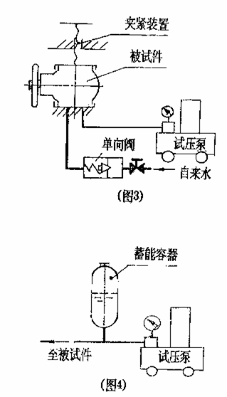 2、將被試容器與試壓泵的排出口連接起來,大中型壓力容器(容積>10L),在試驗前先用清水灌滿被試容器,或采用單向閥借助自來水自動灌水(如圖3),微小型壓力容器(容積<4L)試驗應配置蓄能容器。(見圖4)。