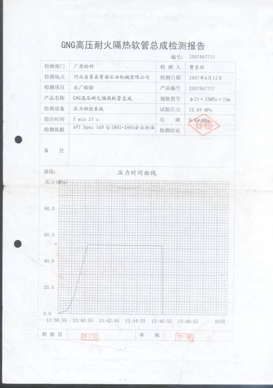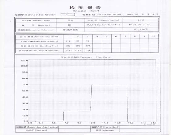 以上為客戶提供的試壓報表。僅供參考,具體請以實物為準。