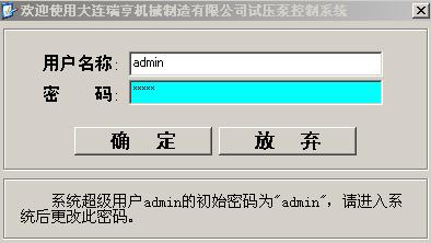 1、登錄:系統自動生成一個超級用戶,用戶名和密碼為admin,進入系統后,通過增加修改刪除用戶等操作,用戶可自己增加刪除修改用戶名稱密碼級別等。
