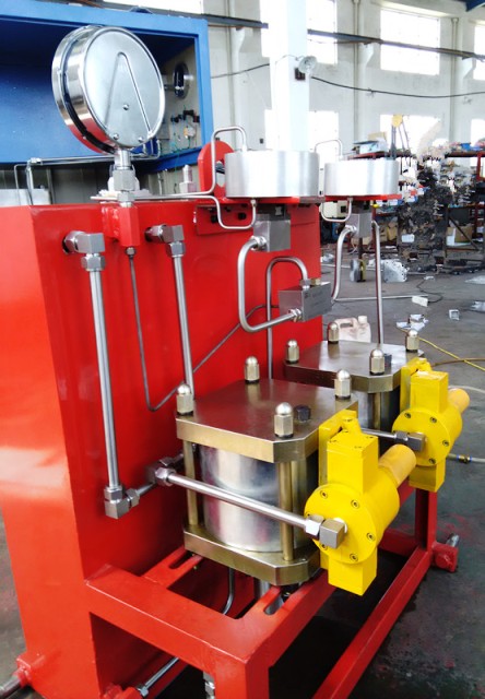 技術參數:額定壓力200MPa,額定流量40L/h(手動控制進氣源壓力變流量);