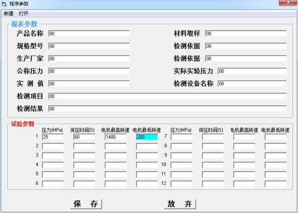 設置完觸感器配置后,進行參數設置,設置試驗參數即試壓試驗編程