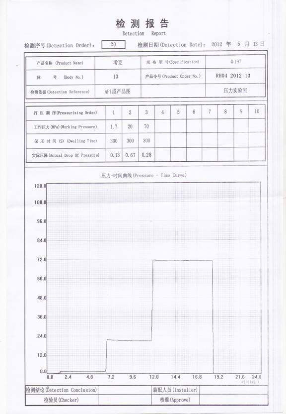 以上為客戶提供的試壓報表。僅供參考,具體請以實物為準。
