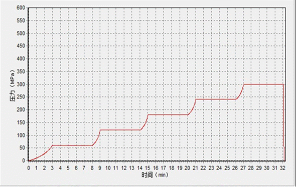 到達300兆帕,試壓泵停止進入保壓階段