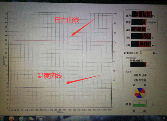 1、在試壓泵壓力試驗過程中,壓力采集系統自帶語音播報功能,可語音播報實時壓力(與支付寶微信到賬的語音播報類似),電腦軟件可以顯示實時壓力數值和實時壓力曲線與溫度曲線,自動記錄壓力值及升壓保壓過程的曲線變化并存儲數據,可以根據歷史數據生成報表。