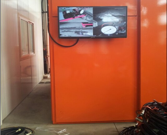 本系統(tǒng)共安裝四路索尼高速攝像機,含四路高清攝像監(jiān)控。其中一路監(jiān)控3D-SY200MPa型電動試壓泵,一路監(jiān)控2D-SY80MPa型電動試壓泵,剩下二路監(jiān)控被測方鉆桿閥,隨時監(jiān)控到壓力試驗中的實時狀況。
