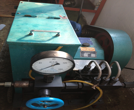 本計算機控制方鉆桿旋塞閥高壓測試系統(tǒng),高壓測試壓泵采用3D-SY160MPa超高壓型電動試壓泵,該試壓泵額定排出壓力160Mpa。額定流量是50L/h,配套功率為4Kw普通電機。