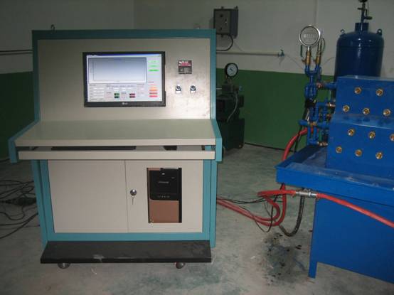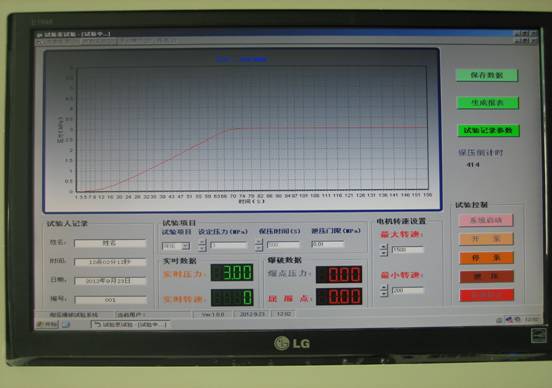 設(shè)備主體由計算機(jī)控制系統(tǒng)、高低壓兩臺電動試壓泵(低壓做水壓試驗(yàn)、高壓做爆破試驗(yàn))兩部分組成。其中電動試壓泵脫離計算機(jī)控制系統(tǒng)后可獨(dú)立進(jìn)行試壓試驗(yàn),但只能顯示和控制壓力不能進(jìn)行數(shù)據(jù)運(yùn)算與打印報表。計算機(jī)控制系統(tǒng)與電動試壓泵之間的距離0根據(jù)實(shí)際情況而定,通過電線電纜及數(shù)據(jù)線與高低壓兩臺電動試壓泵相連,設(shè)備所有外接電線電纜及數(shù)據(jù)線據(jù)項(xiàng)目現(xiàn)場施工需要調(diào)整。被測氣瓶與試壓系統(tǒng)距離根據(jù)實(shí)際情況而定,放置在爆破試驗(yàn)箱內(nèi)(選擇性配件不在報價之內(nèi)),通過高壓測試管線與試壓泵系統(tǒng)相連。