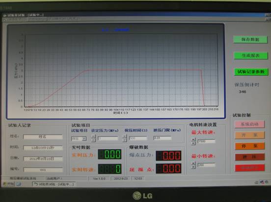 無縫鋼瓶水壓爆破 試驗(yàn)數(shù)據(jù)采集和控制軟件 |