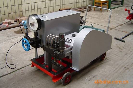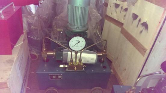 2、水壓爆破試驗(yàn)配套試壓泵為3D-SY300MPa,額定排出壓力300MPa。額定流量140L/h,配套為功率15Kw普通電機(jī)。