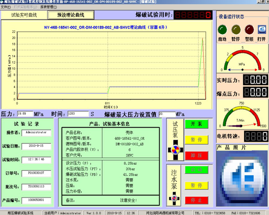 系統控制軟件梯度升壓后爆破界面,圖片僅供參考具體請以實物為準